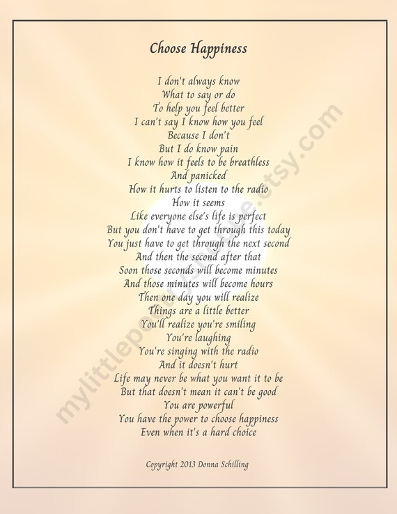 Choose Happiness Encouragement Poem, Uplifting Poem, Inspirational